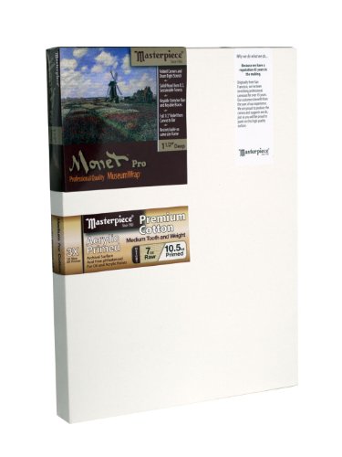 The Masterpiece Monet Pro profile is 1-1/2-inch deep when stretched, and offers a full 1/2-inch reveal between the bar face and canvas back. A keyable bracing system offers complete frame expandability and maintains tautness. Folded corners means the selvage is uncut and sufficient for restretching on the same size frame. Monterey Canvas is a premium quality 100-percent cotton single fill duck canvas, 7-ounce raw, 10-1/2-ounce primed weight. This general-purpose cotton canvas offers a characteristic texture and feel that appeals to even the most discriminating artist. It is well suited for most painting techniques and projects. Monterey offers the best value and quality. For acrylic and oil. Read More at Amazon.com